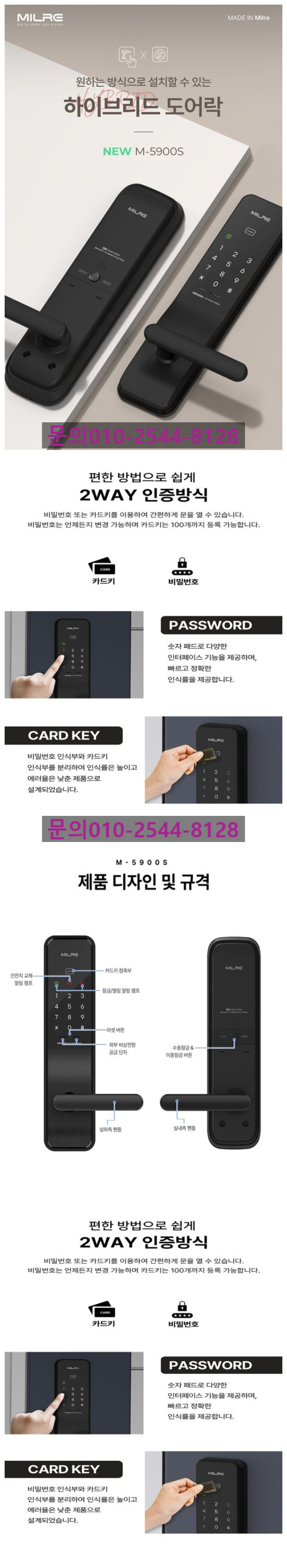 밀레 디지털 도어락 M-5900S(2WAY방식)